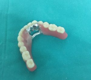 Parcijalna skeletirana proteza je maksimalno redukovana baza proteze čiju osnovu čini metalni skelet i kao takva neutrališe osećaj stranog tela u ustima. Stepen redukcije je različit i zavisi od broja i rasporeda preostalih zuba i stanja njihovog stanja. Proteza izrađena na ovakav način imaju najbolji prenos pritiska sila žvakanja na preostale zube i na taj način maksimalno sprečavaju resorpciju (gubitak) koštanog tkiva alveolarnog zubnog grebena. Ove proteze se oslanjaju na zube pomoću livenih metalnih kukica.
