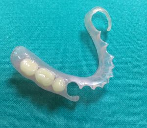 Klasična akrilatna parcijalna proteza se izrađuje od akrilata i sadrži zičane kukice pomoću kojih se drži za preostale zube zbog neophodne stabilazije i retencije proteze. (slika)